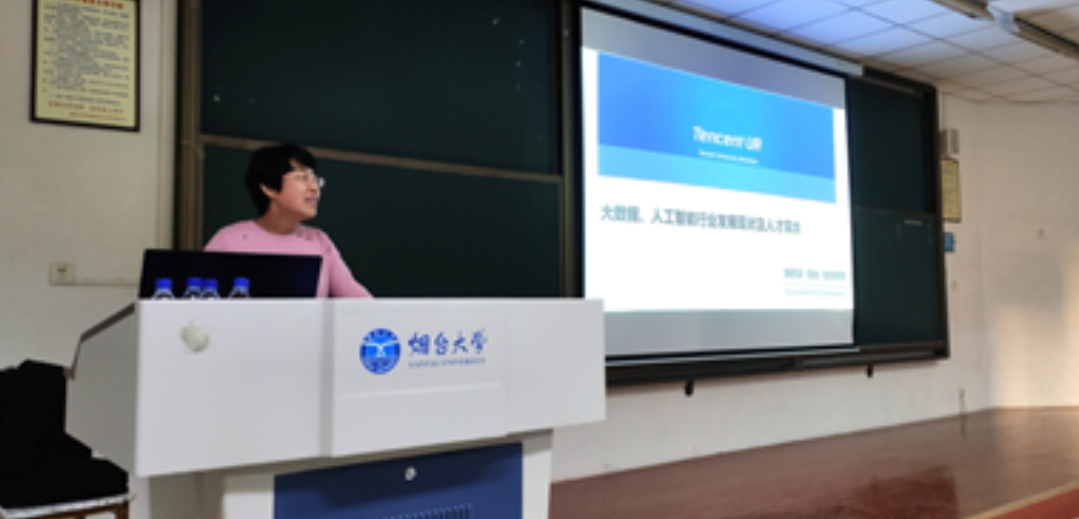 讲座中,陈媛媛经理为同学们介绍了腾讯及腾讯云(烟台)数字性吧