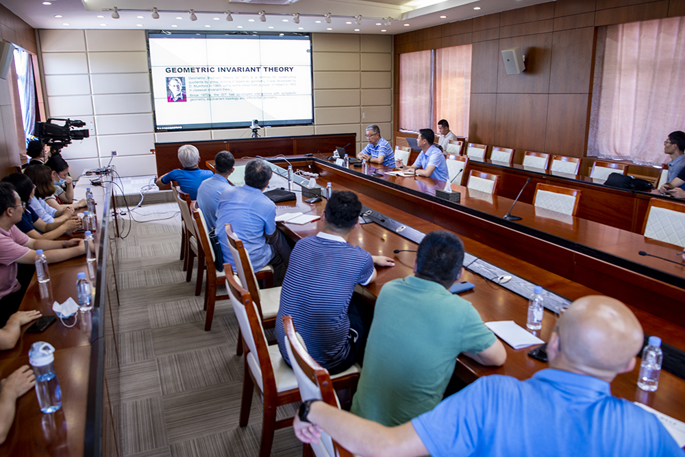 来访期间,田刚院士通过线上线下相结合的方式为全校师生作题为《K-稳定性》的学术报告。报告中,田刚院士首先通过代数群是否有限生成问题(Hilbert第14问题)引入了经典的几何不变理论。接着,田刚院士详细阐述了Kähler-Einstein度量的存在性问题,通过引入“K-稳定性”的概念提出了一个Fano曲面存在Kähler-Einstein度量存在的充要条件。最后,田刚院士介绍了“K-稳定性”和“几何不变理论”的关系以及近年来国内外学者在“K-稳定性”研究领域所取得的重要研究成果。与会师生纷纷表示田院士的报告紧扣国际数学研究前沿,理论深刻,思想深邃,使大家不仅了解了国际学术前沿,也领略到田刚院士的大家风范和学者之风,感受到了学术的无穷魅力。