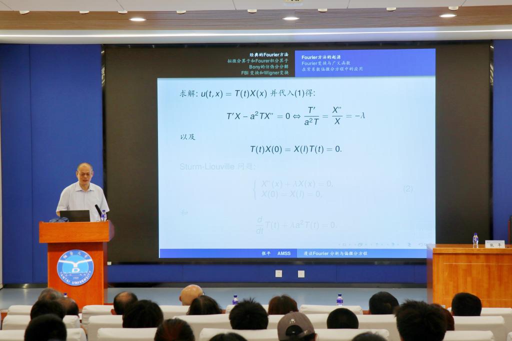 “三元名家论坛”,以“漫谈Fourier分析与偏微分方程”为题,为我校师生带来一场精彩的学术报告,报告会由校长郝曙光主持。