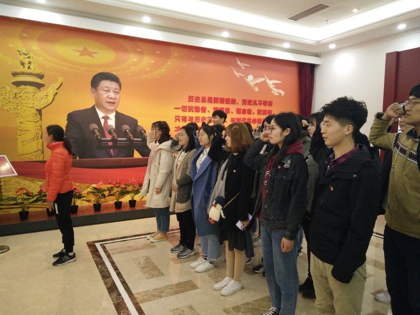 纪念馆前久矗立,牢记使命发图强。面对鲜红的党旗,性吧