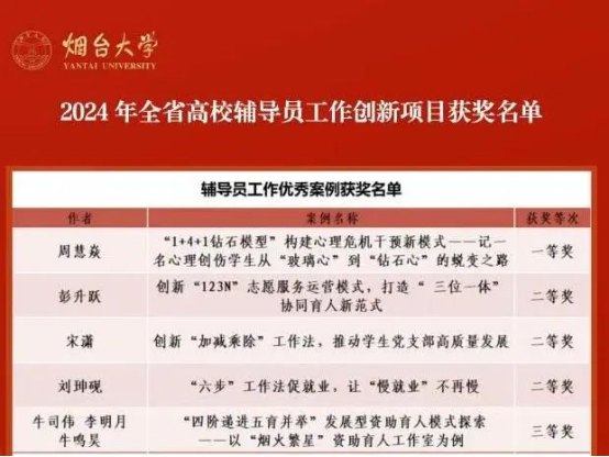 辅导员宋潇喜获辅导员工作优秀案例二等奖。此次评选由中共山东省委教育工委组织开展,经高校推荐、专家评审、网上公示等环节,最终评选出获奖作品。