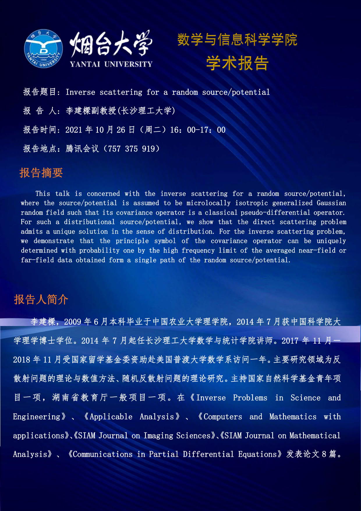 学术报告-李建樑 副教授(长沙理工大学)