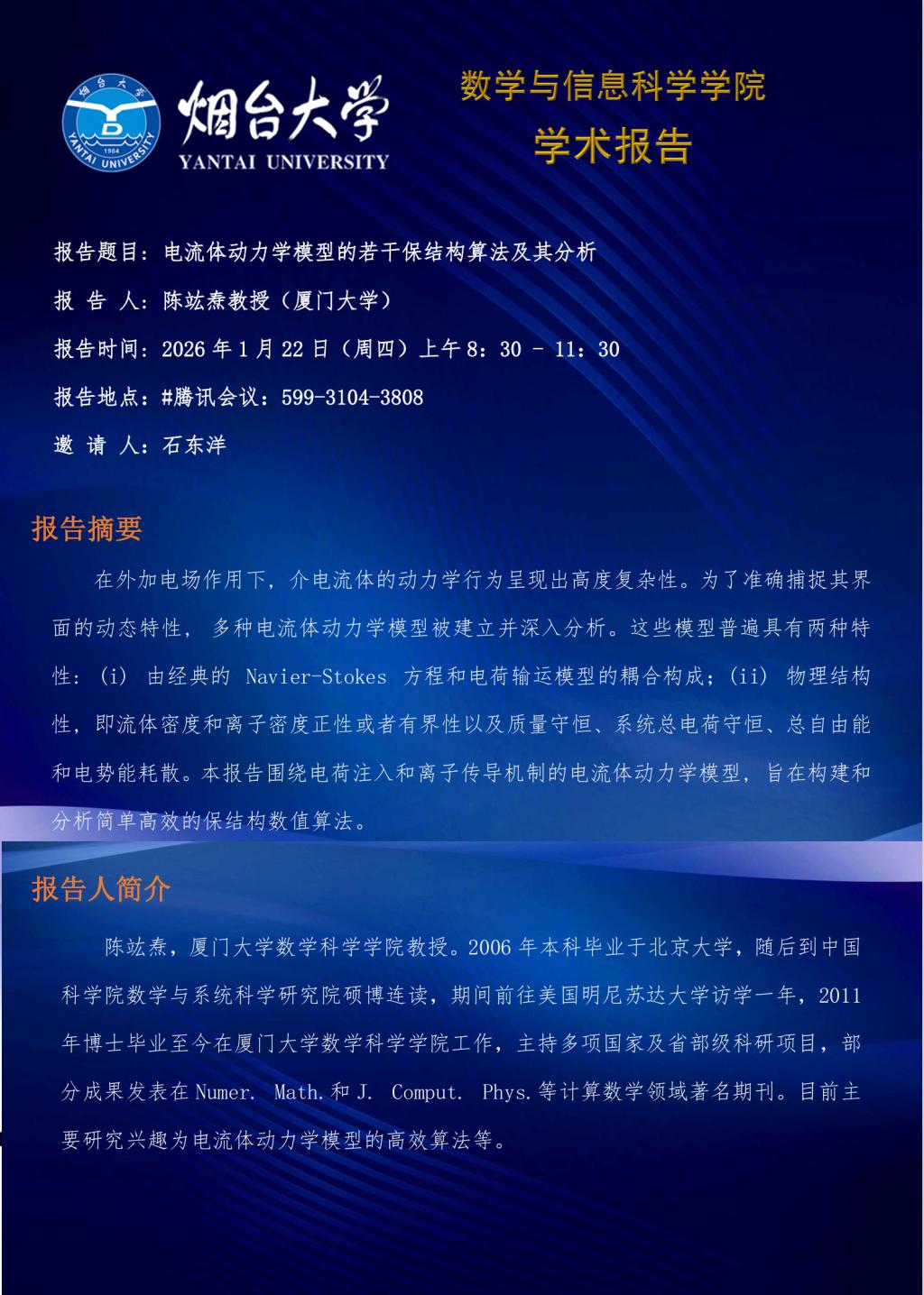 学术报告—陈竑焘 教授(厦门大学)—20260122