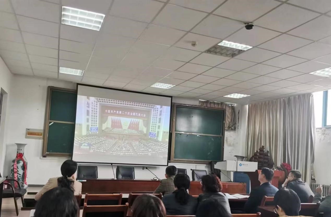 信息与统计教工党支部组织主题党日活动,集体学习党的二十大精神及新修订党章,会议由党支部书记孙丰云主持。