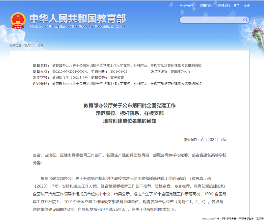 日前,教育部公布了第四批新时代高校党建“双创”工作培育创建单位,性吧